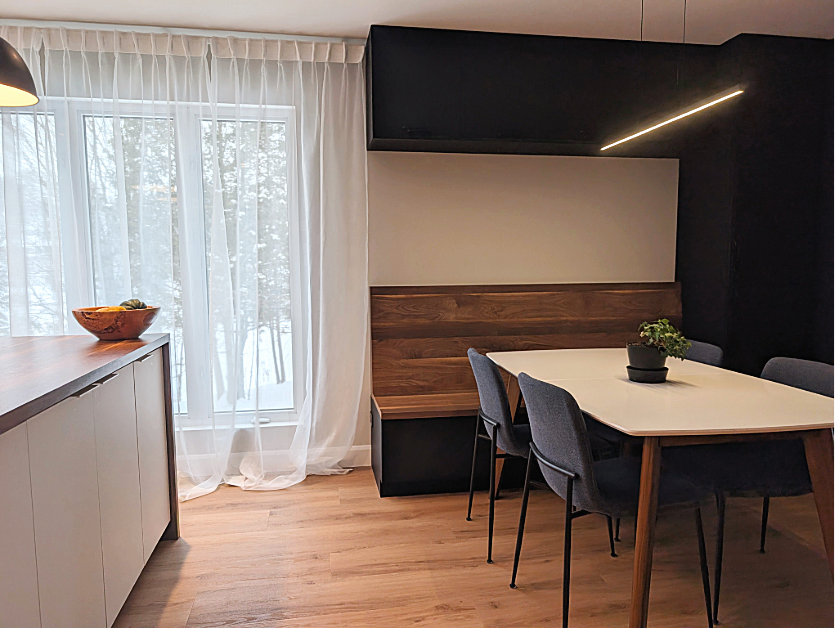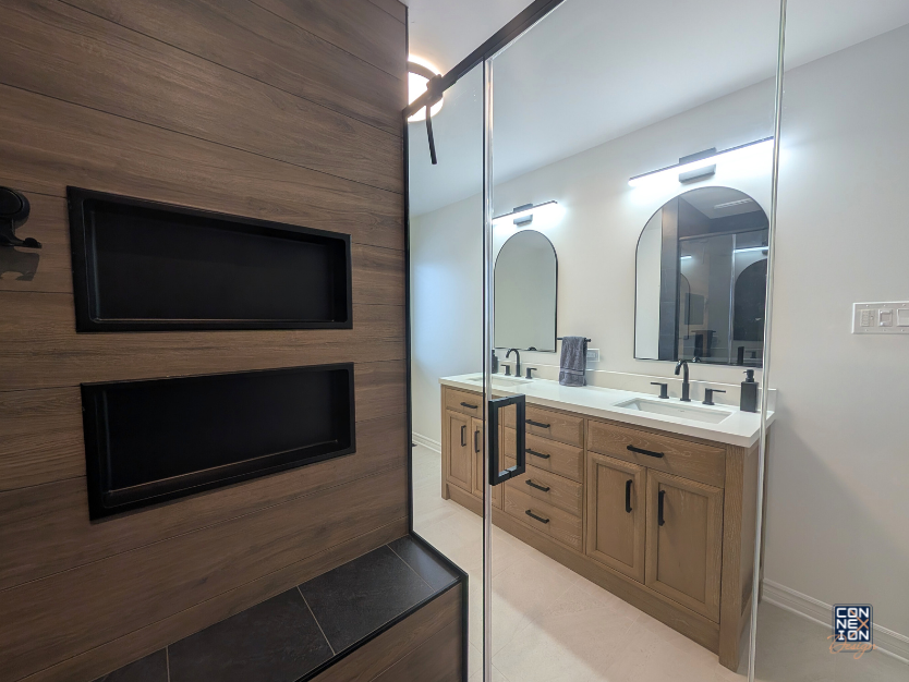 Chez Connexion Design, nous vous invitons à exprimer votre personnalité et à concrétiser vos rêves. Que vous souhaitiez transformer votre cuisine en un lieu de rêve, créer une salle de bain zen ou réinventer votre salon, nous sommes là pour vous guider, de la conception à la mise en œuvre. C’est avec une attention particulière aux détails et une créativité sans limite que nous transformons chaque projet en une expérience sur mesure.